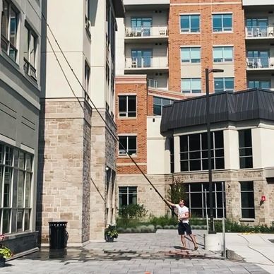 We use pure water-fed pole systems. This high end equipment enables us to clean exterior windows and frames thoroughly and safely from the ground up to five stories high if roof anchors are not present. It's available for residential and commercial window cleaning.
